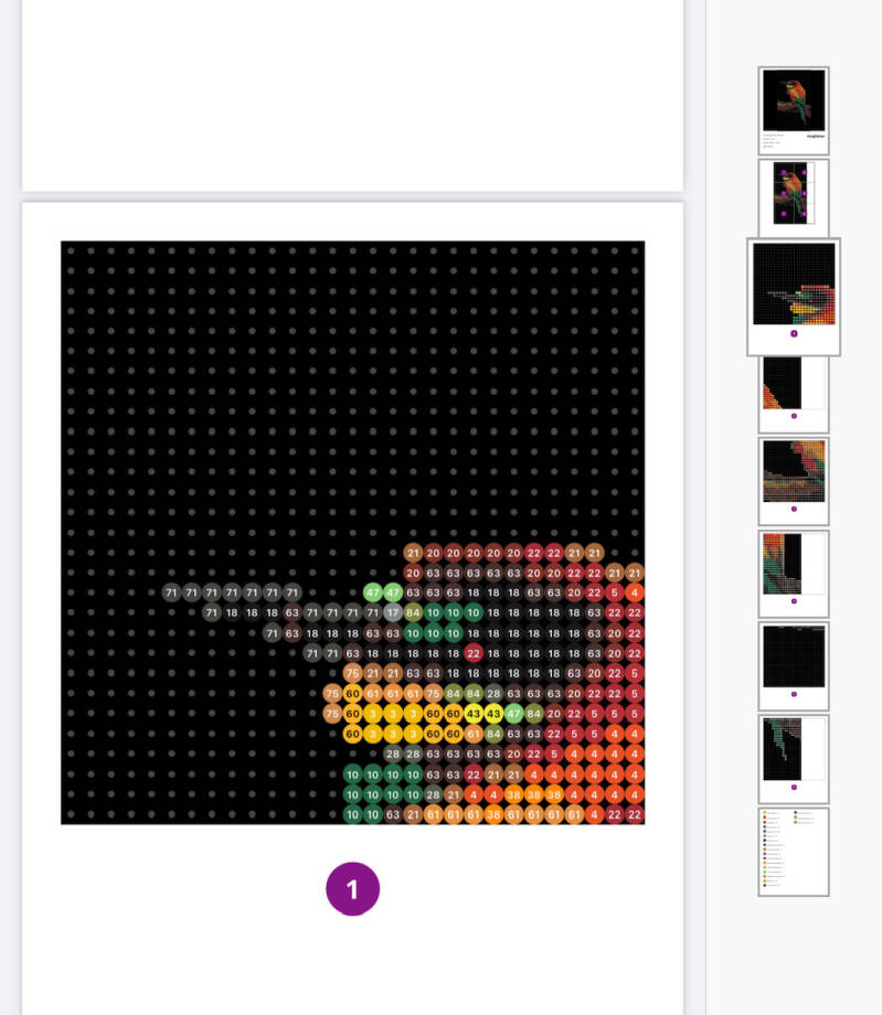Op het patroon staat duidelijk aangegeven welke strijkkralen er gebruikt zijn om het patroon te maken. Voor al mijn ontwerpen maak ik gebruik van Hama-midi strijkkralen. De nummers op het patroon corresponderen met de nummers van Hama-midi strijkkralen. Ook is aan het patroon een overzicht toegevoegd welke kleuren strijkkralen er nodig zijn en de hoeveelheid strijkkralen per kleur.
